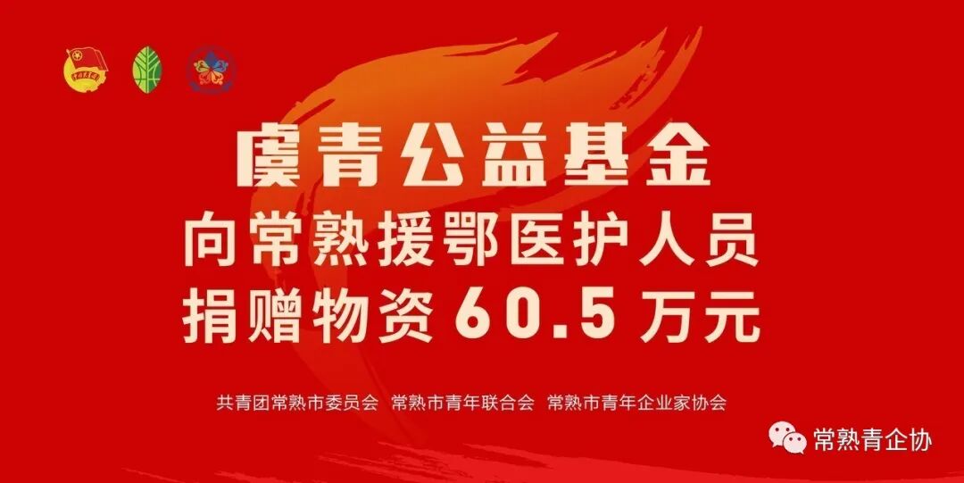 今年年初,“虞青公益基金”面向全市青年企业家、青联委员发起“抗击疫情,青年先行”爱心筹款行动,常熟市青年企业家协会率先响应,共计筹得善款60.5万元。